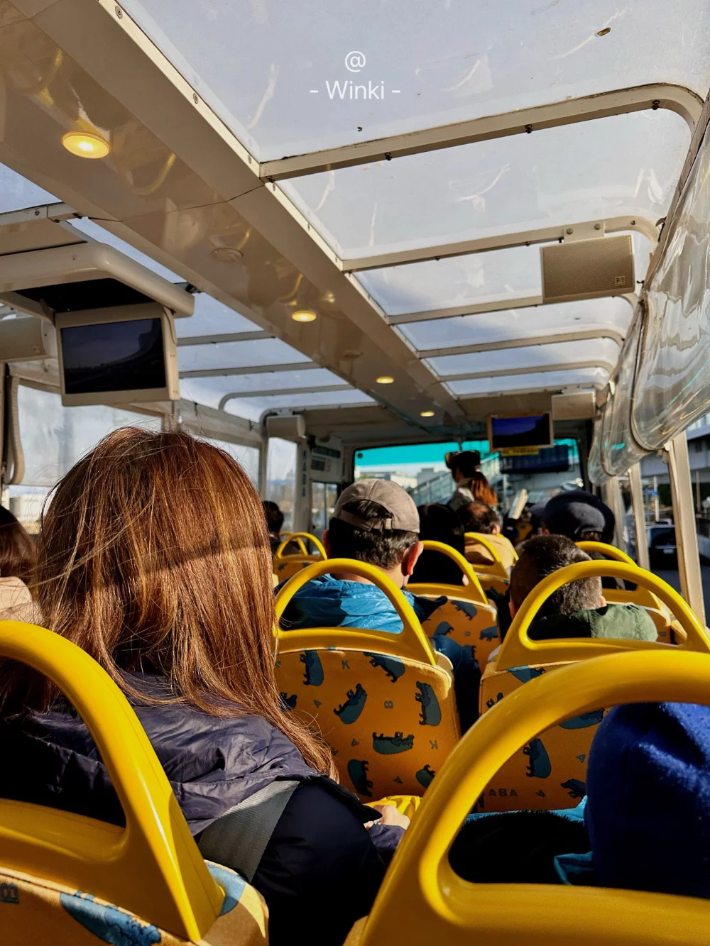 車窗都開著,車頂還是半透明的(記得做好防晒)