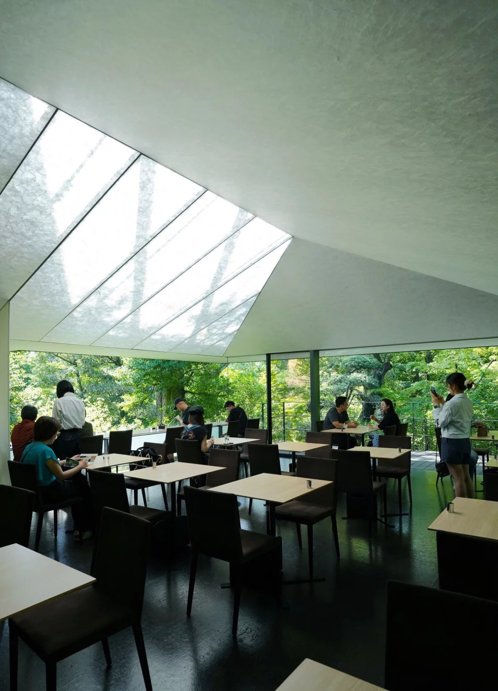 館內還能體驗到典型的日式庭院,紅葉季會特別美,庭院內的一座玻璃咖啡店也很值得打卡。
